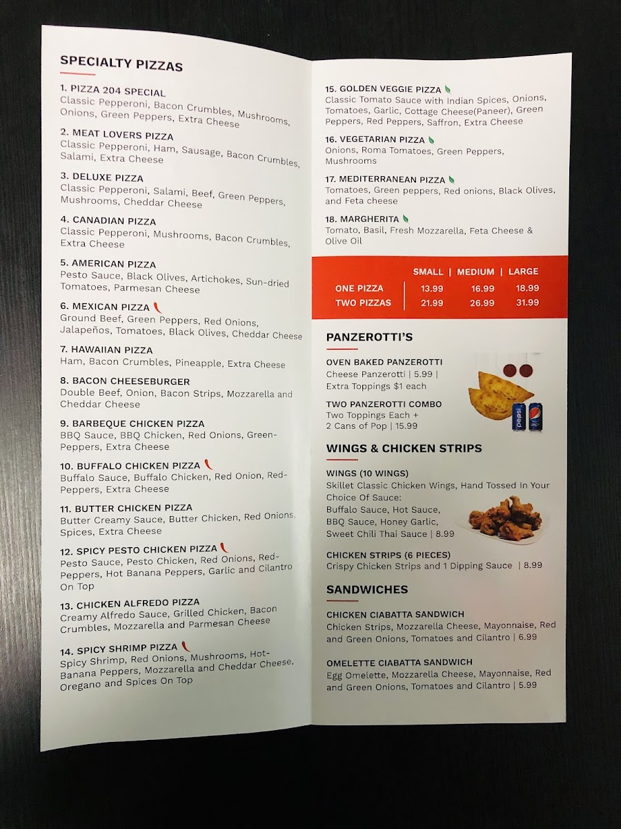 Pizza 204 Menu